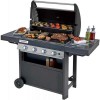 Notre barbecue class 4 LBD est l'entrée de gamme dans les modèles équipés de 4 bruleurs en inox garantie 3 ans, vous retrouverez sur ce barbecue une surface de cuisson en acier émaillé positionnée sur 2 bruleurs avec en dessous 2 caches bruleurs pour les protéger des projections et une plaque de cuisson en acier émaillé aussi sur les 2 autres bruleurs sans caches bruleurs pour amener plus de chaleur directement à la surface. Ce barbecue class 4 LBD vous satisfera pour faire des grillades pour 10 à 16 personnes ou pour un nombre plus restreint d'invité car vous pouvez allumer que 2 bruleurs sur les 4 possibles, la partie grill est de taille identique aux modèles 3 bruleurs et la partie plancha est pour sa part doublement plus grande que celle des modèles 3 bruleurs. En façade vous retrouverez un couvercle noir équipé d'un thermomètre afin de mesuré la température intérieur capot fermé, celle-ci peut beaucoup varié si l'on ouvre souvent le couvercle, il est donc conseillé de mettre les aliments a griller et d'attendre quelques minutes, 2 ou 3 avant d'effectuer un contrôle de la cuisson. Ce barbecue est équipé du système de nettoyage instaclean en 6 parties qui s'enlève très facilement pour se nettoyer ou être mis au lave-vaisselle et surtout pour prolonger la durée de vie du barbecue, pensez a nettoyer les bacs de récupérateurs des jus après chaque utilisation car sinon vous pouvez avoir des flammes au niveau de ces parties basses lors de sa mise ne marche, car ce jus redevient liquide et très enflammable. Ce barbecue est un bon rapport qualité prix sur un modèle 4 bruleurs et celui-ci pourra aussi évoluer en recevant les accessoires culinary wok, pizza, paella, cuisson verticale qui s'adapteront facilement. Son déplacement avec ses 2 roues se fera en soulevant un coté aussi bien dans le gazon que sur un sol dur.